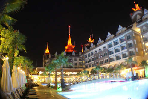 Hotelansicht am Abend