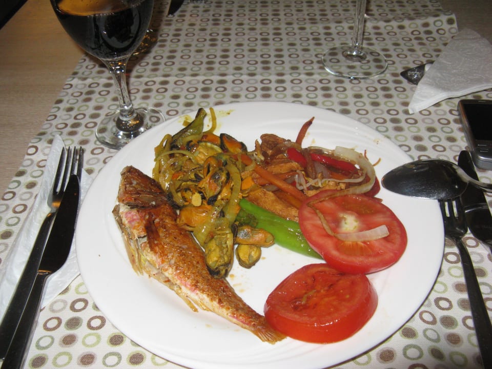 Gegrillter Fisch mit Gemüse und Salat