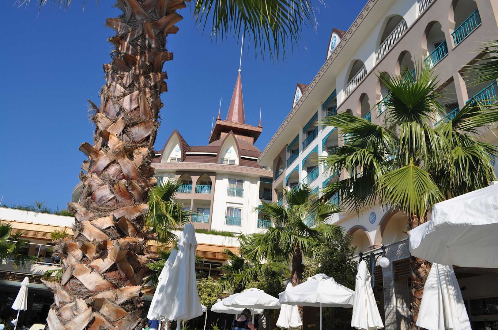 Vom Pool auf das Hotel