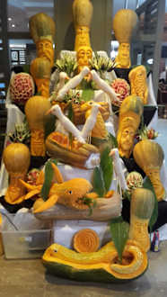 Verzierungen aus Kürbis und Melone
