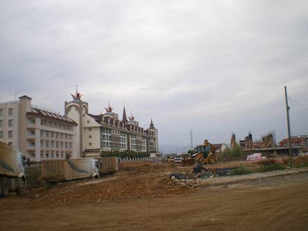 Baustelle, dahinter Hotel