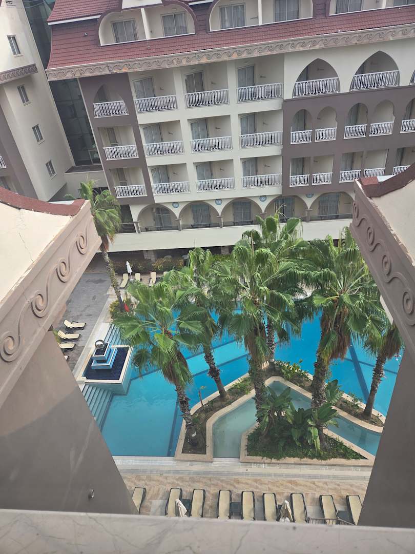 Blick vom Treppenhaus zum Pool