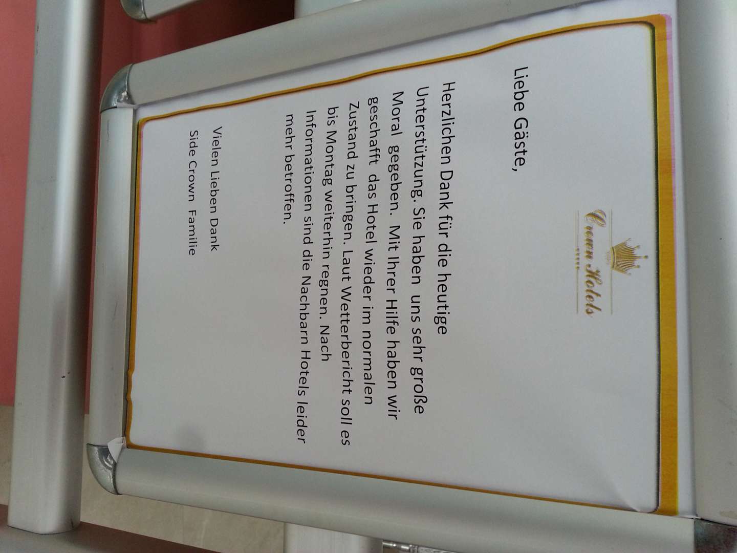 Schreiben an die Gäste