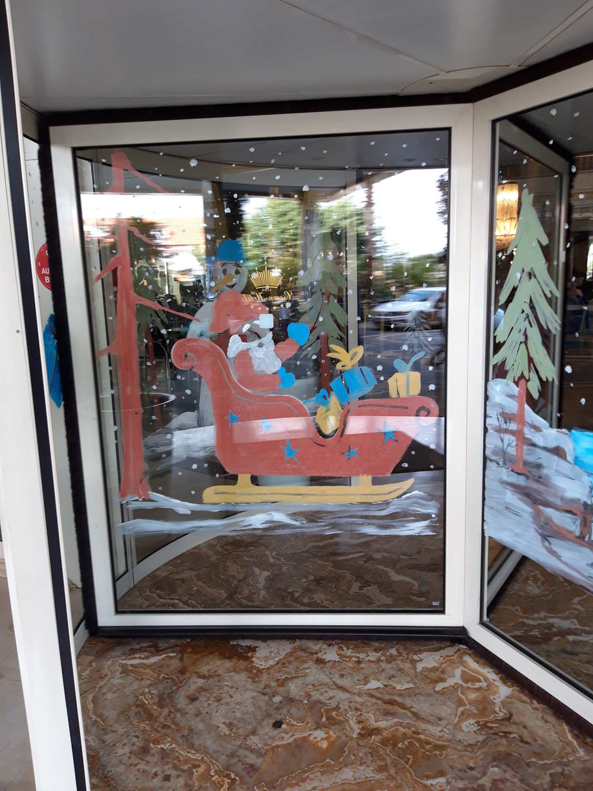Weihnachtsdeko am Eingang ins Hotel