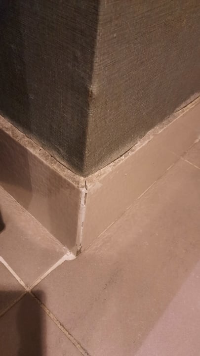 Sockelfliesen und Tapete im Bad