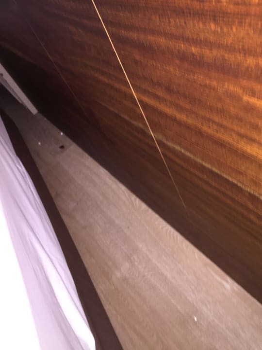 Hinter dem bett liegt noch der müll von den gästen vor uns