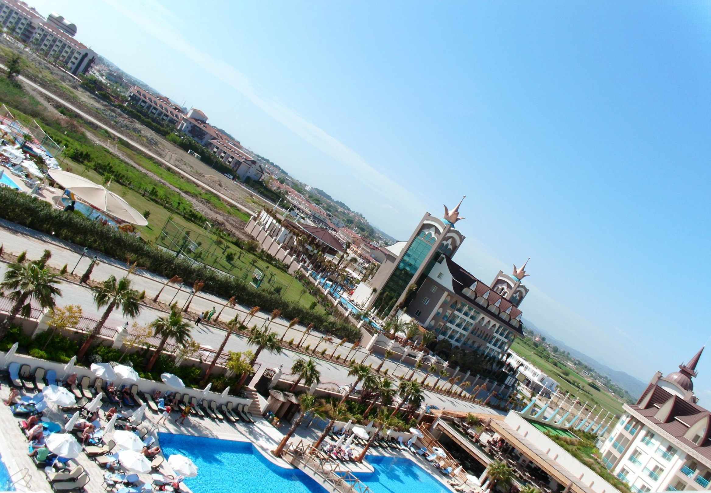Zimmerausblick auf Pool und den Crown Select