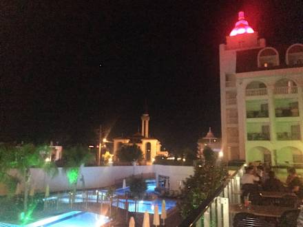 Pool bei Nacht von der Terrasse