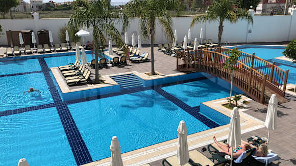 Pool Ausblick von der Sonnen Terrasse.
