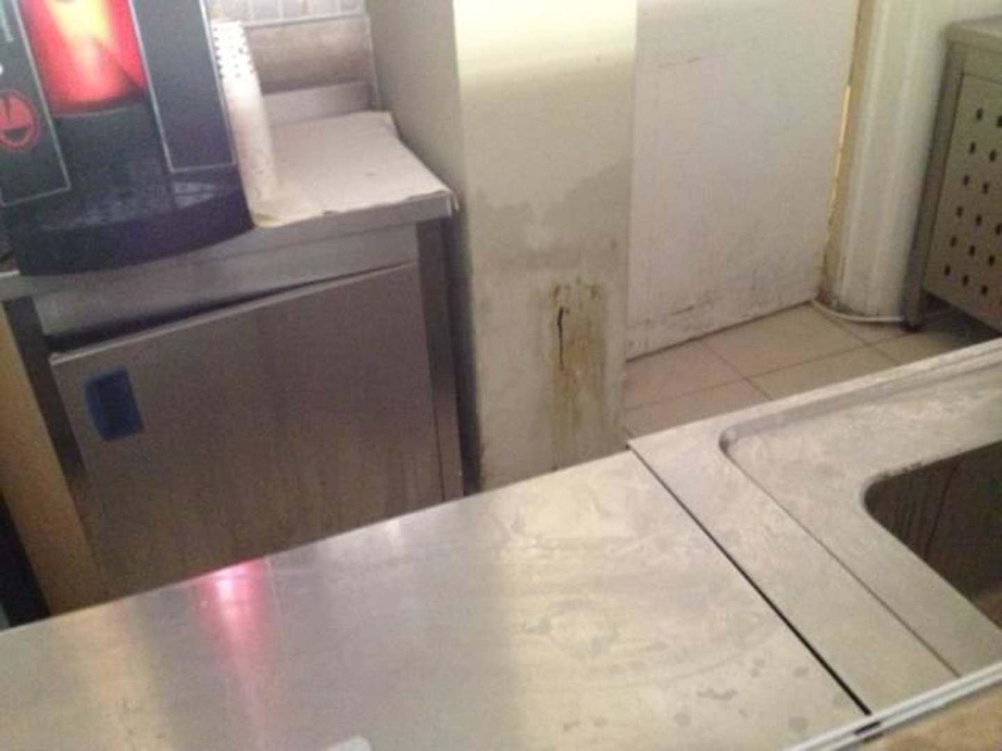 Dreckige Wand neben Kaffeeautomaten