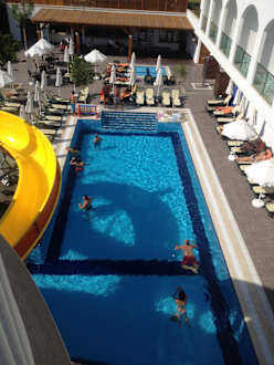 Wasserball und andere Aktivitäten im hinteren Poolbereich