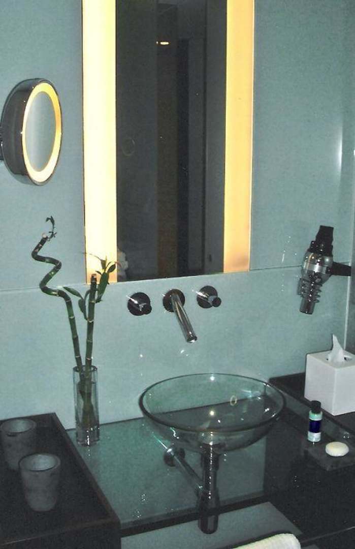 Sanitäre Details im SideIn manchen Badbereichen dominiert auch sehr viel Glas. Aber alles ist durchgestylt.