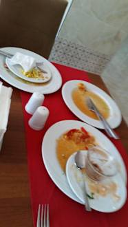 Mittags-kein Serviceso sieht der nicht abgeräumte Tisch mittags aus.