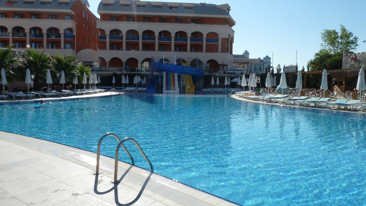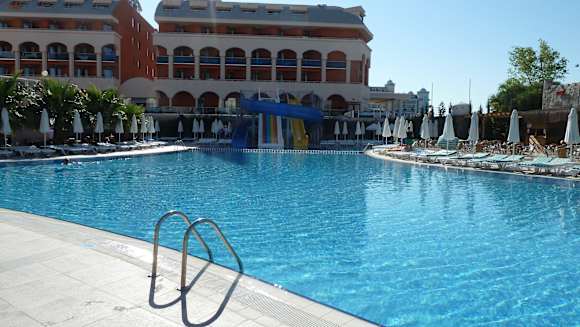 Poolanlage mit RutschenDie Poolanlage morgens gegen 9.00 Uhr mit Blick auf das Nachbarhotel "Orange Palace"