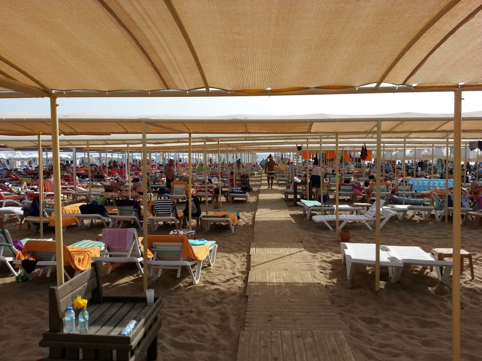 Liegenbereich mit Schatten am Strand
