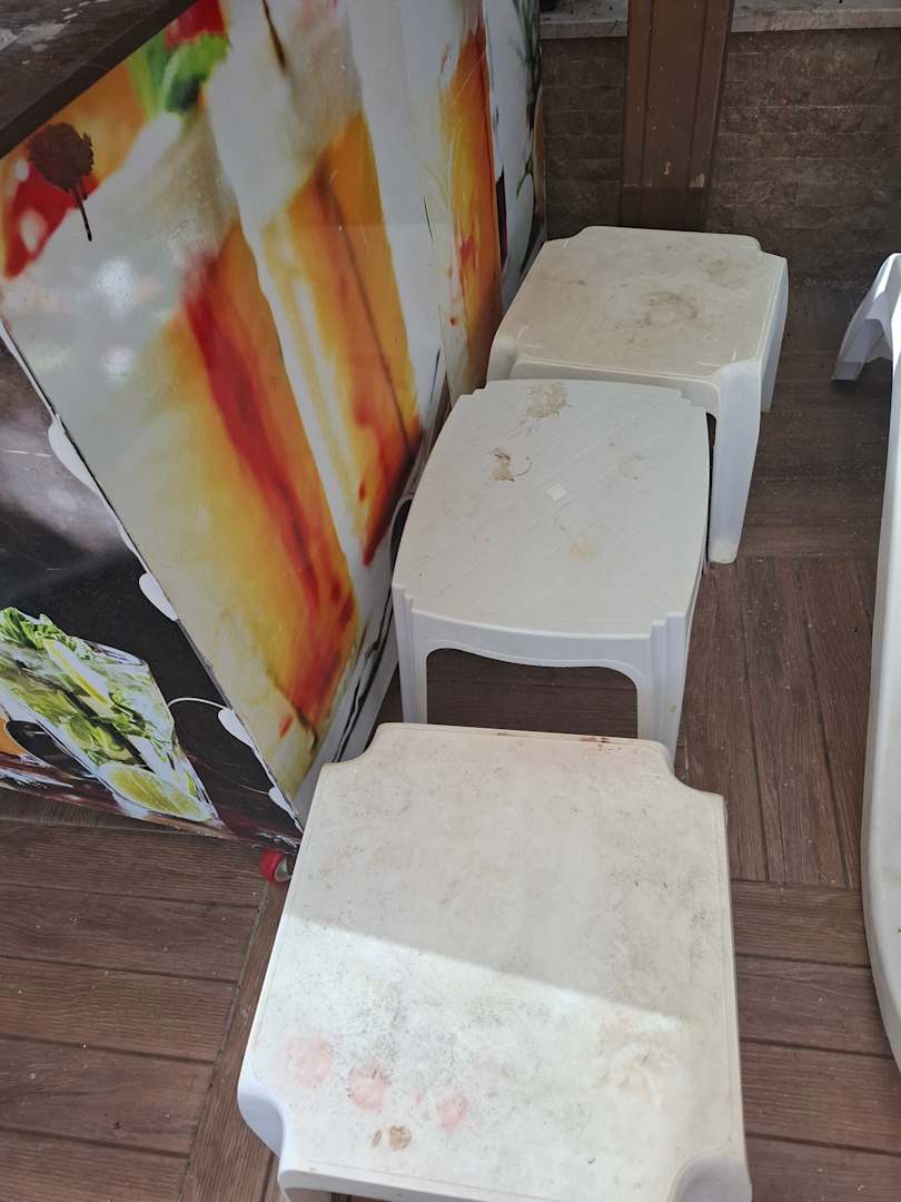 Die Tische am Poolbereich .Auch die wurden nie gesäubert