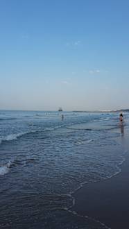 Morgens am Strand die meisten schlafen noch der einsame Läufer ist unterwegs.