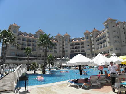 Hotel gezien van aan het gezellige zwembad