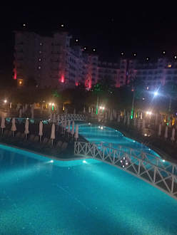 Sehr schöne Poolanlage und stimmungsvoll am Abend!