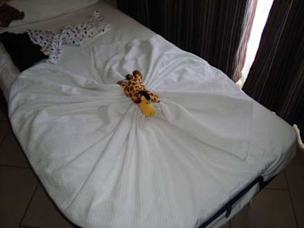 Zustellbett im Doppelzimmer, nachdem die Zimmerreinigung erfolgt ist.