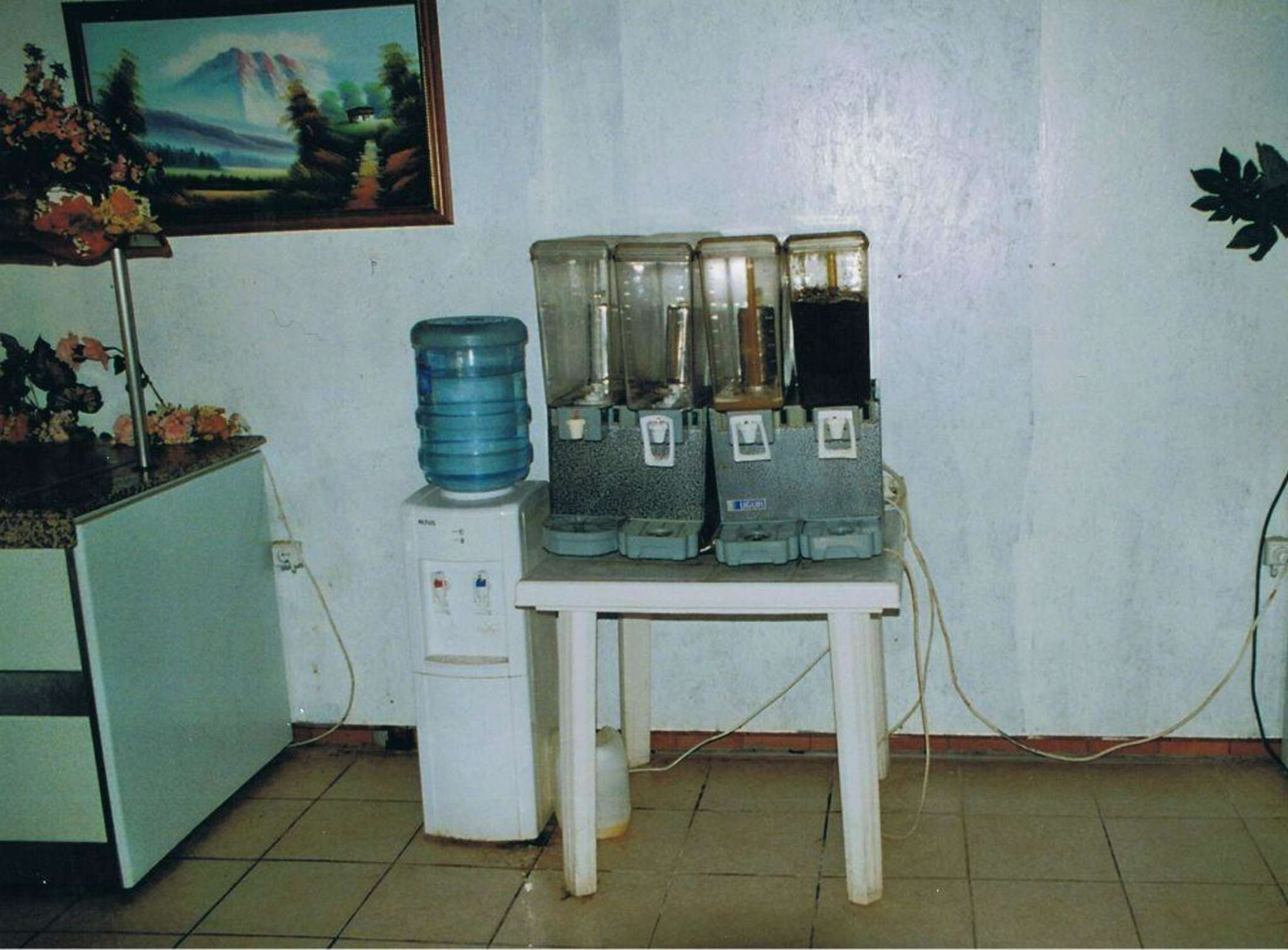 das braune soll ein Pfirsichsaft sein, Ekel pur. Das der ebenfalls wenig ansprechende Orangensirup alle wurde spricht ausschließlich für die Quantität des Barangebotes..