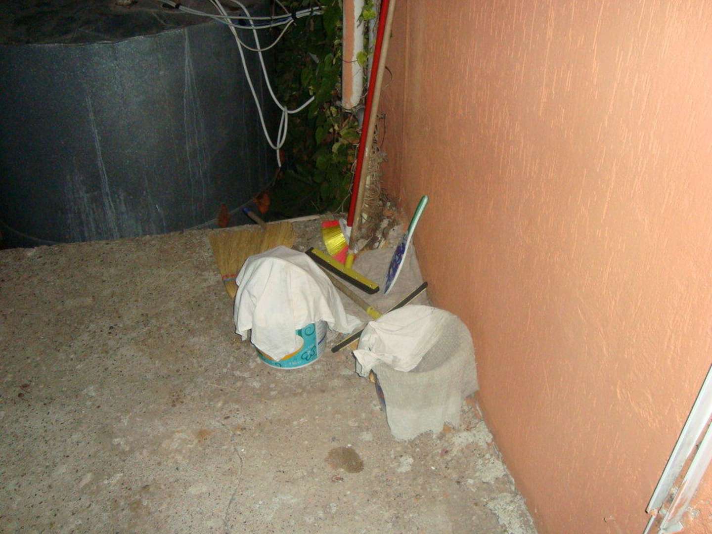 überall stand alles rum, Müll und Putzzeug