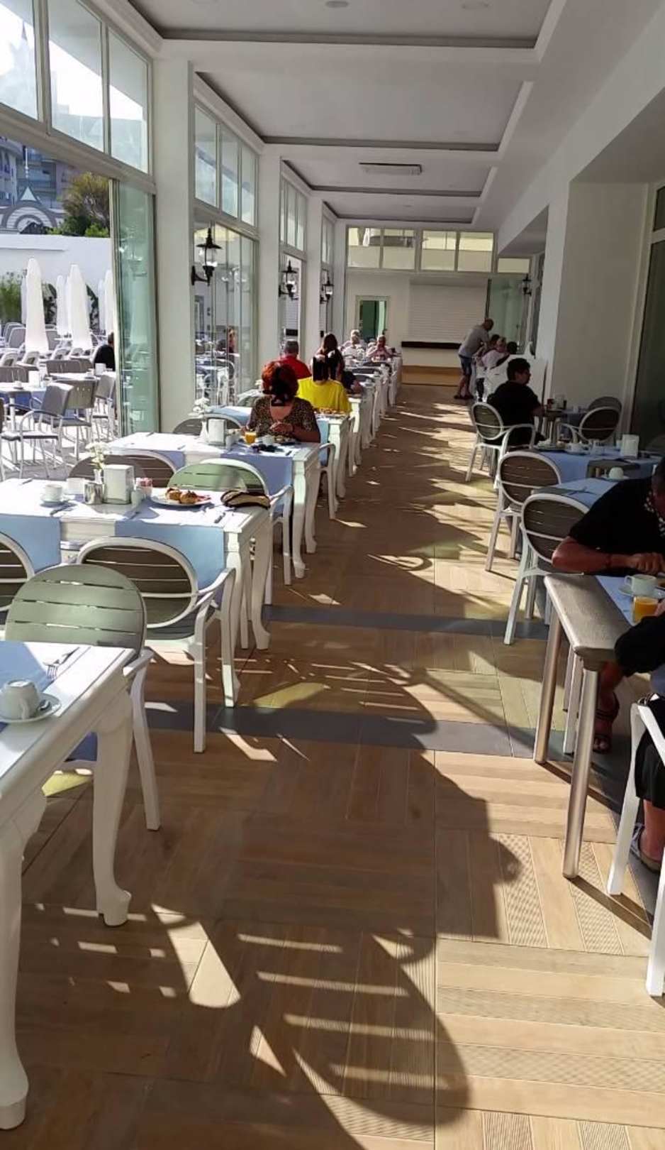 Da das Restaurant mittags einfach geschlossen bleibt sollen zur Mittagszeit hier alle Gäste die nicht gerade am Meer sind Platz finden! :-) Ich finde Ihre Aussage schon recht dreist! Dieses Bild wurde morgens aufgenommen.
