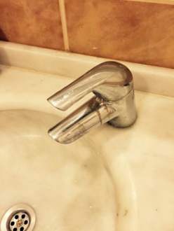 Dreckiger Wasserhahn bei der Ankunft