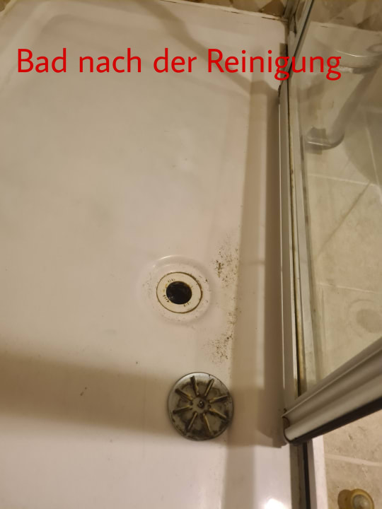 Dusche wurde 3 Tage überhaupt nicht gereinigt, ebenso das Klo