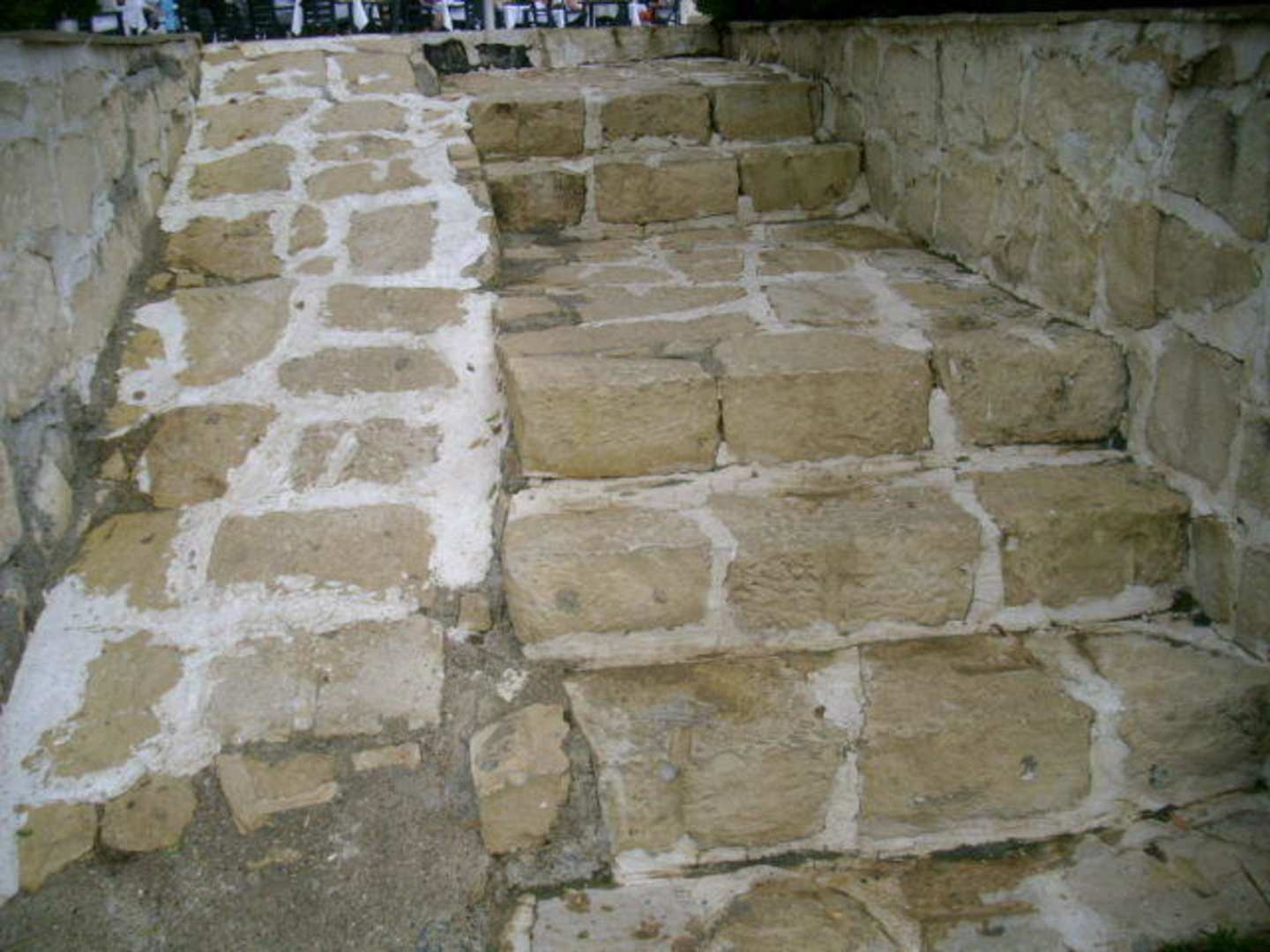 sehr unebene Treppe, Vorsicht