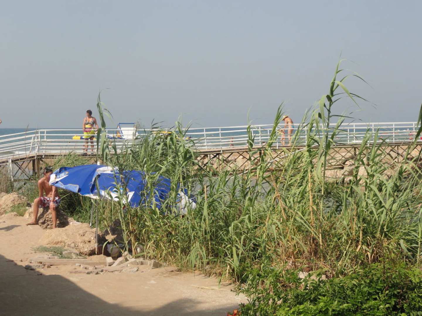 Das ist die Brücke am Strand, die über den Fluss führt, wo die Schildkröten und Fische drin sind, zur Beach-Bar von Desire und Hane.