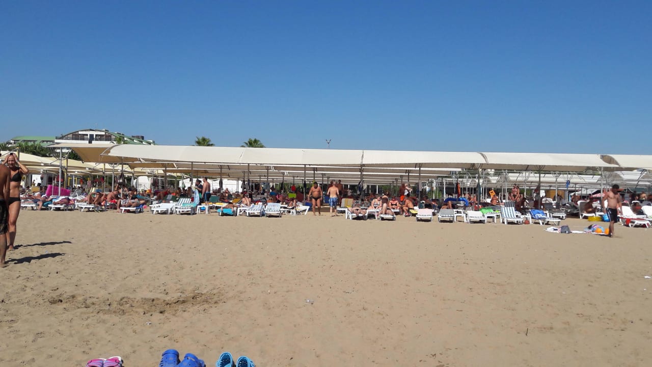 Der Strand vom SRP.Das ist der Strand vom Side Royal Paradise. Dort findet Boccia & Strand Gymnastik statt. Am Strand kann man den ganzen Tag verbringen und man kann auch an der Strandbar von 10:00-17:00 Uhr Getränke schlürfen und von 12:30-14:00 Uhr Mittagessen.
