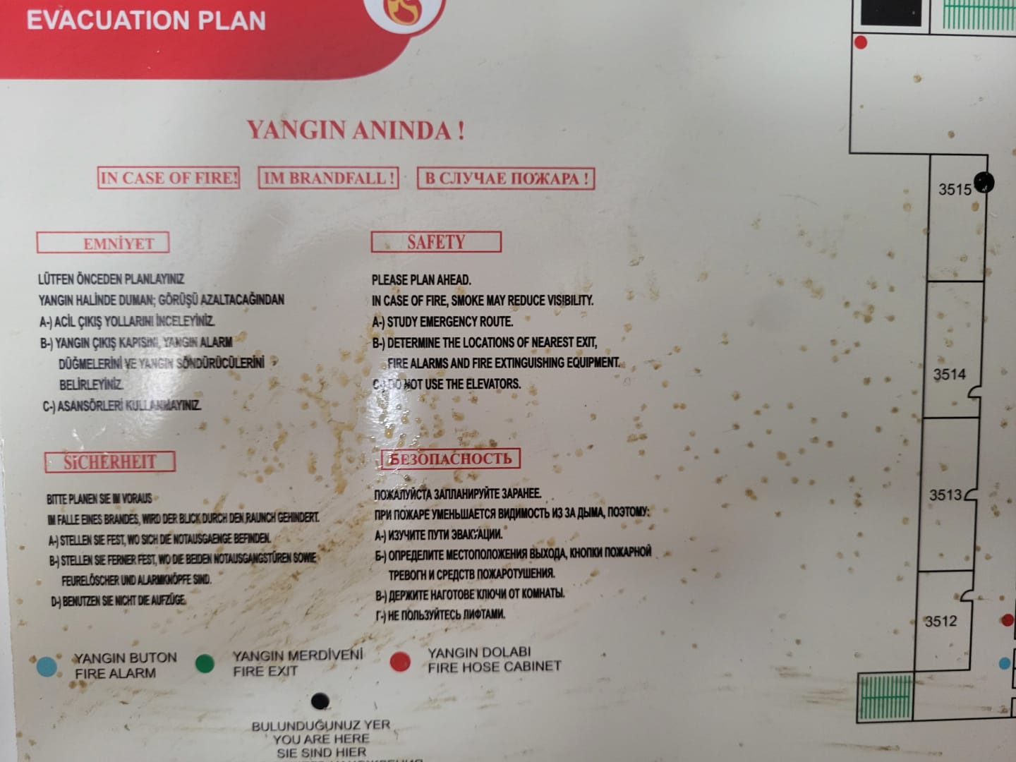 Das Schild für den Notausgang lecker 😋 Flecken