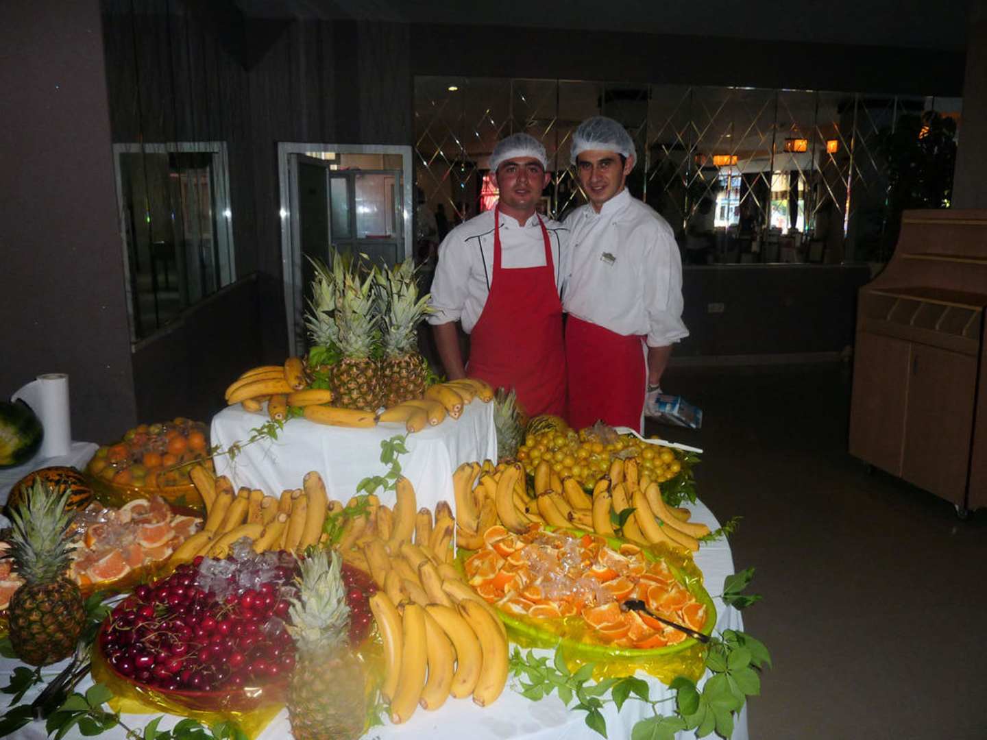 2 der vielen netten und guten Köche vor dem Obstbüffet