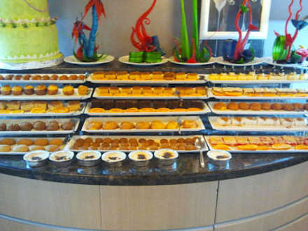 Das ist der selbst gemachte Nachtisch.Das sind einige klein Gebäcke die frisch zubereitet werden. Es gibt Pudding oder für Obst lieb haber frisches Obst z.b. Melone, Pfirsich usw. Ich würde Melone empfehlen weil, das andere Obst w.z.b. Äpfe u.s.w. von vielen Menschen angefasst wird.