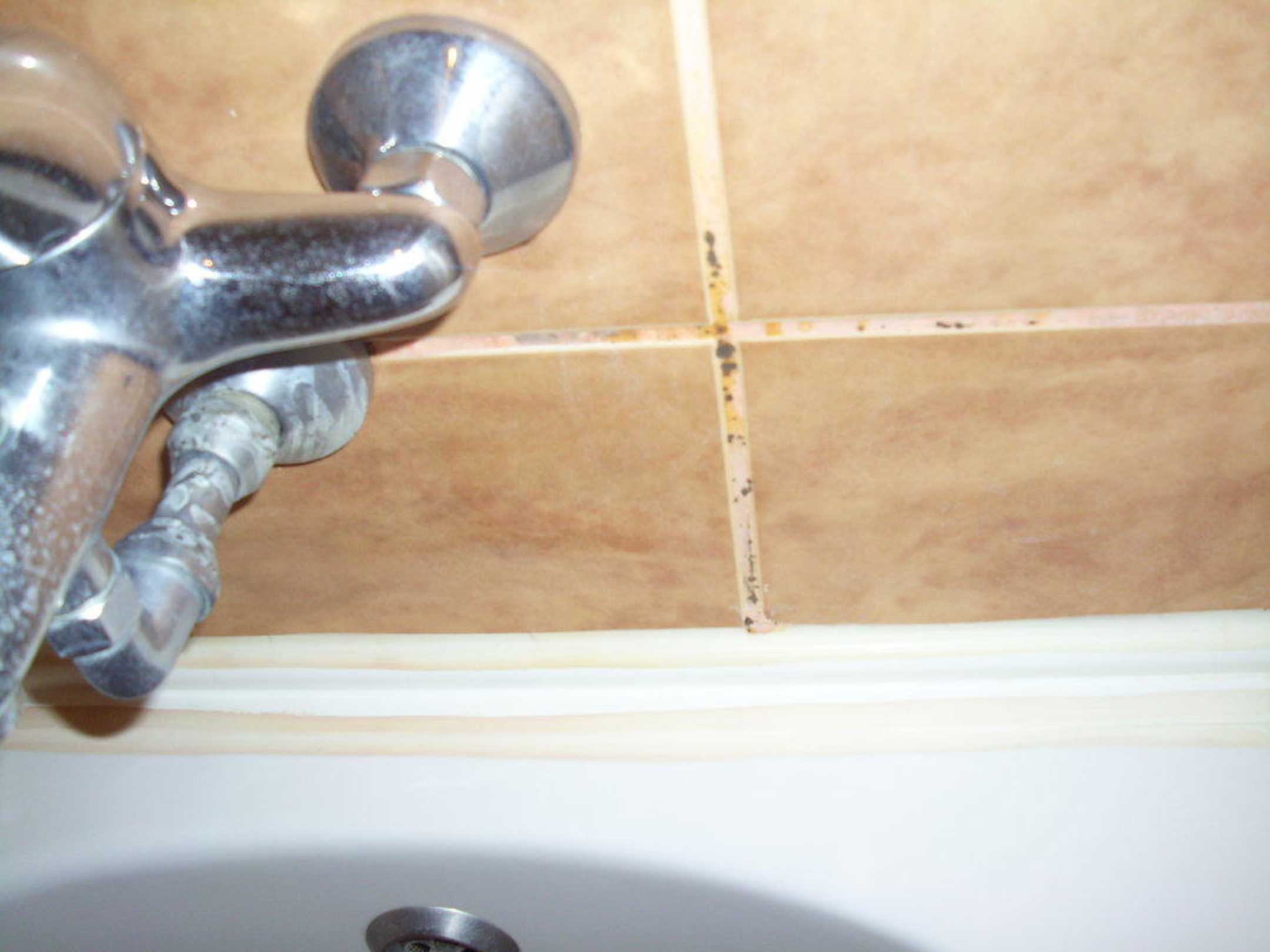 Leider verschimmelte Fugen im Bad.
