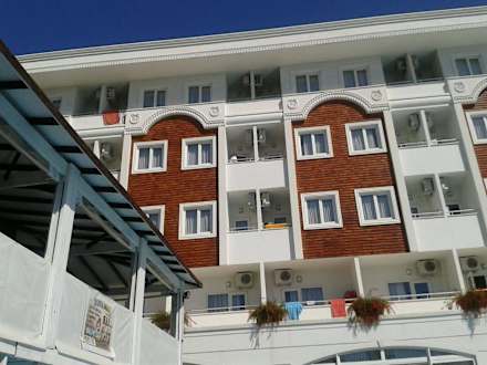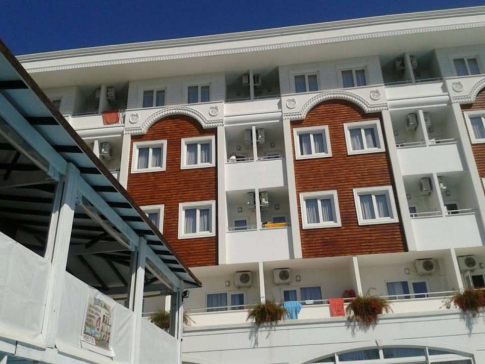 Blick auf die Zimmer vom großen Pool.Dort könnte man ein Zimmer auf dieser Seite haben oder auf der anderen Seite.