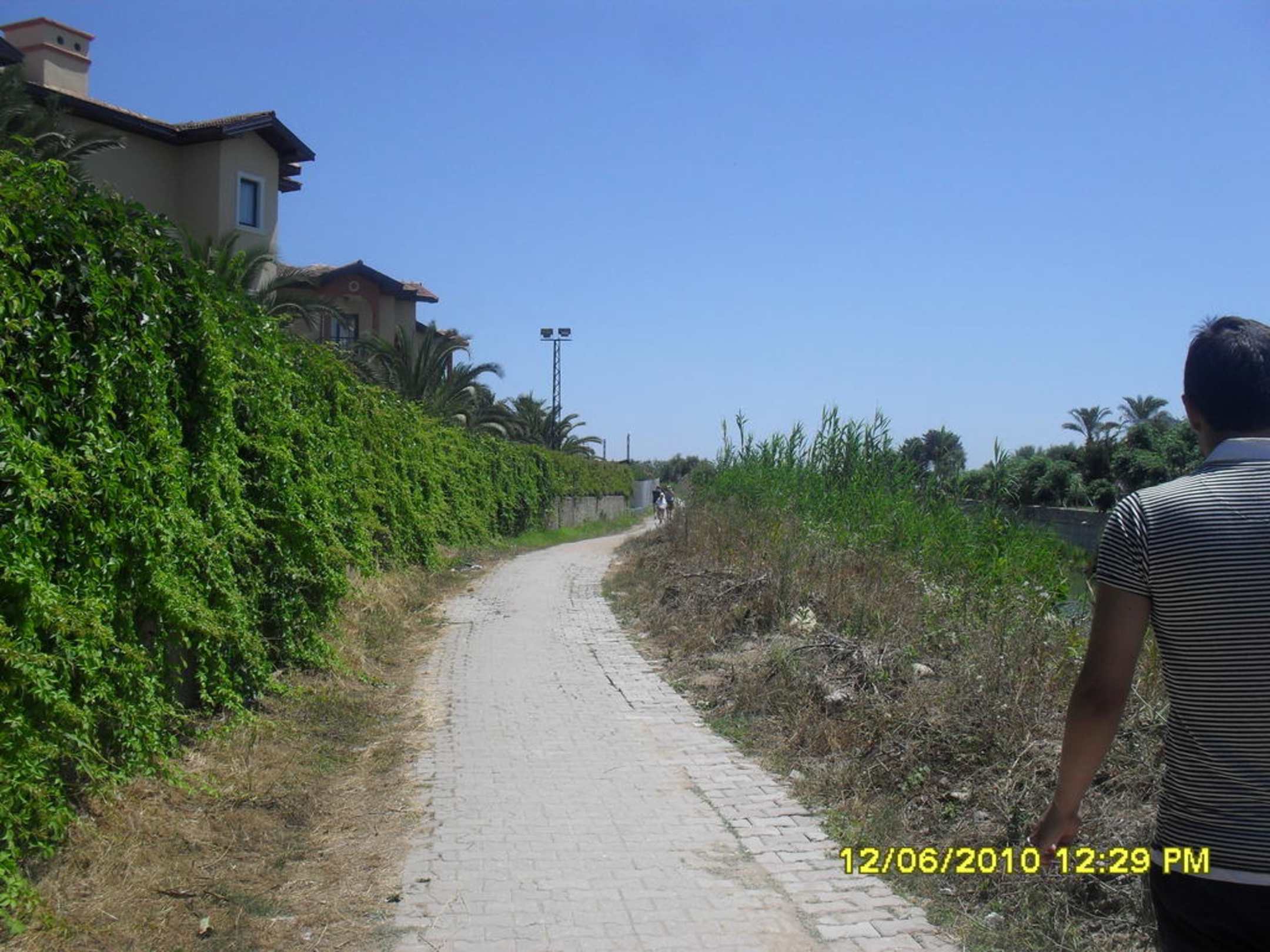 links büsche & blumen, rechte seite toller fluss der ins meer mündet, mit fischern
