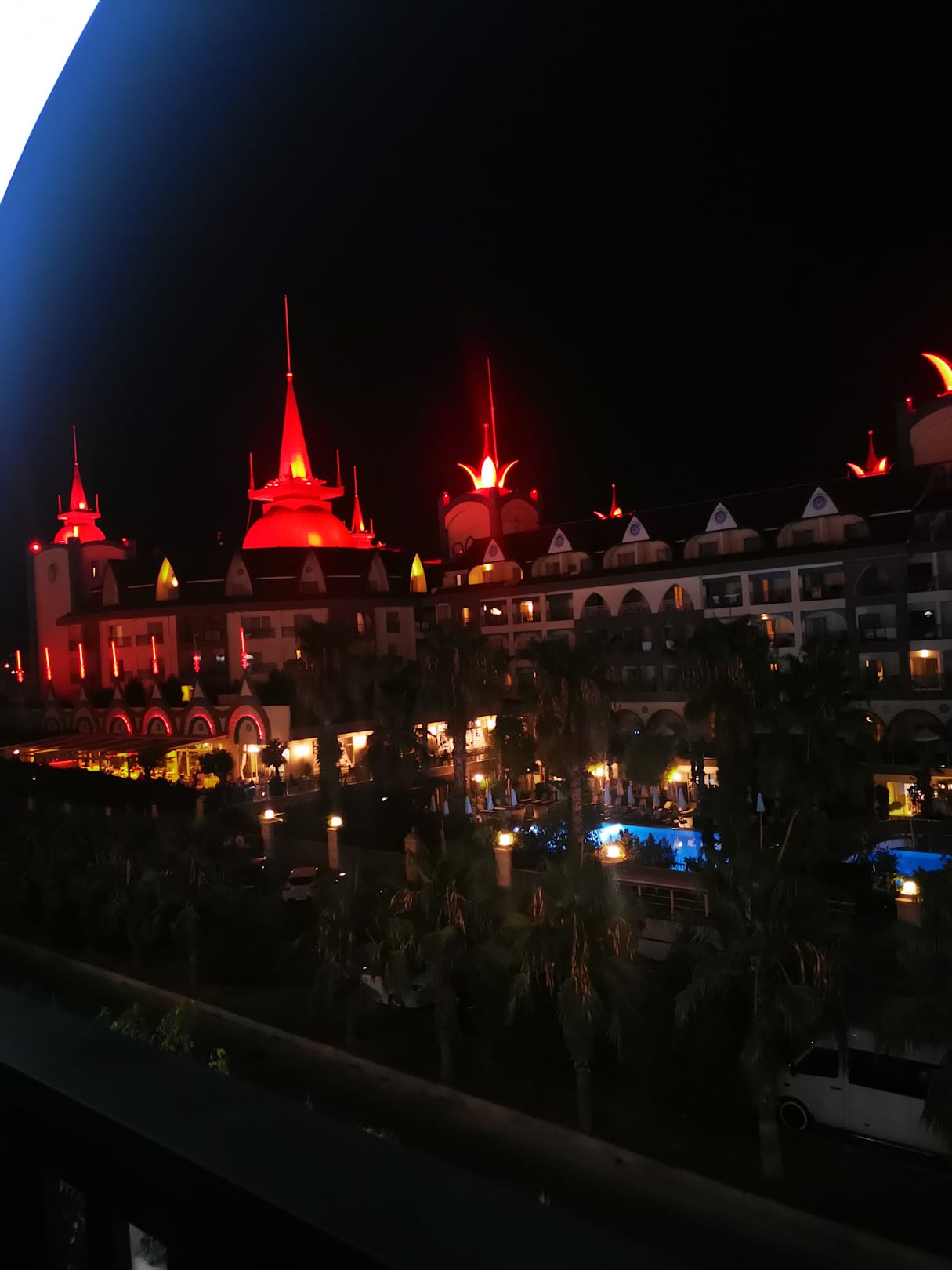 Ausblick aus dem Hotelzimmer Royal Style auf ein anderes Hotel. Morgens Aquagym und Abends Musik-relativ laut. Einfach die Fenster schließen und Klima anschmeißen.