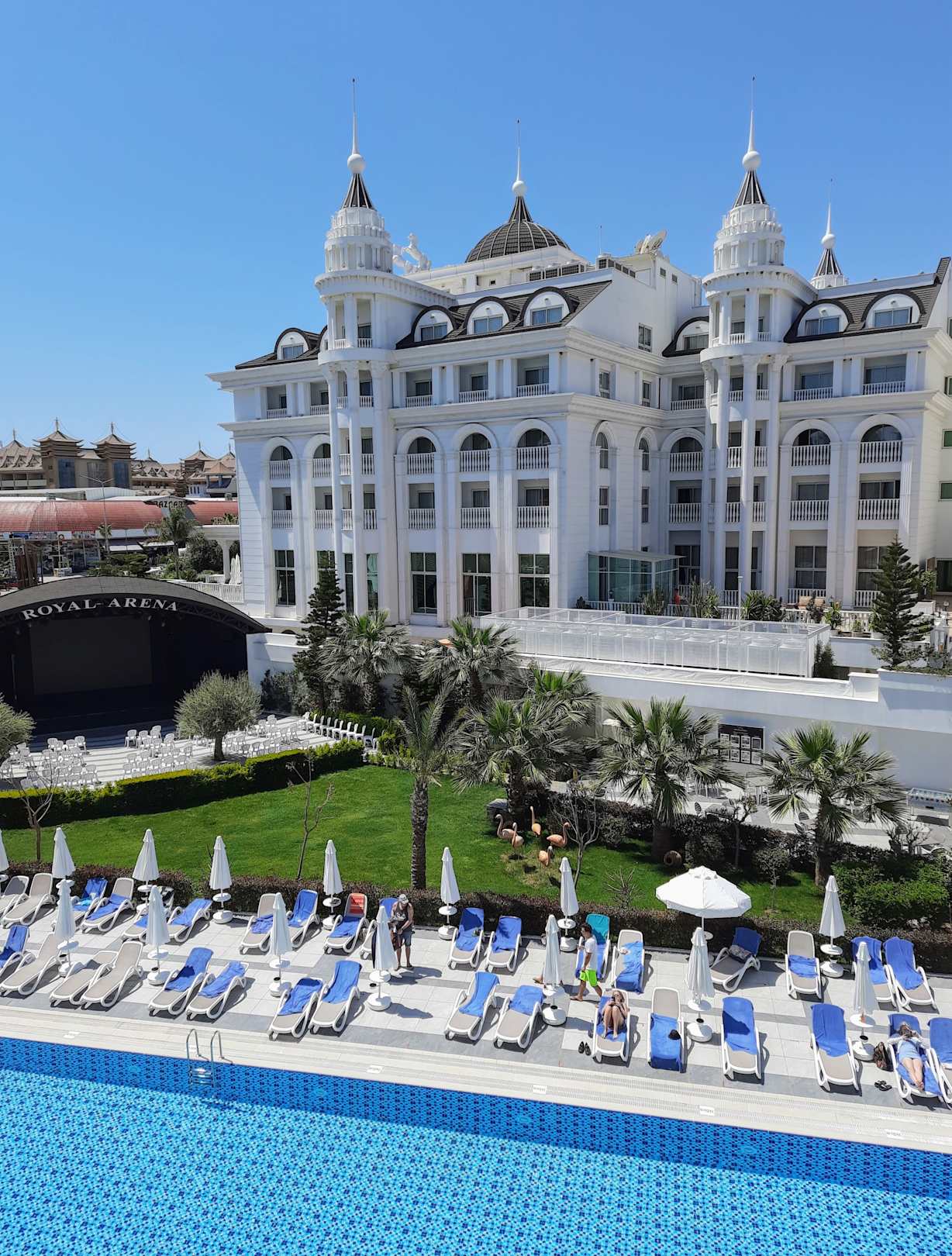 Blick vom Balkon unseres Zimmers auf den Pool