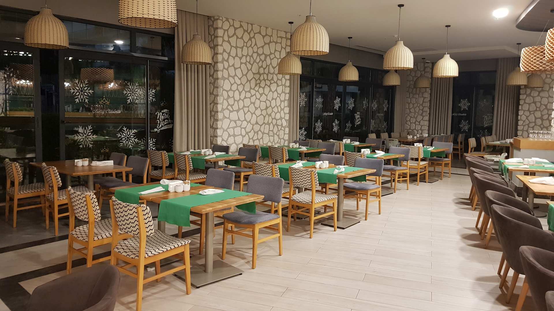 Hier lässt sich das tolle Essen genießen. Wunderschön gestaltet. Gemütliche Athmosphäre. Service, Kochstationen und Personal einfach großartig. Auch auf Covid Sicherheitsrichtlinien geachtet.