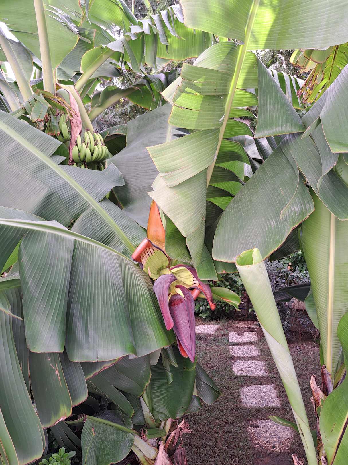 Bananen schon fertig und in Blüte