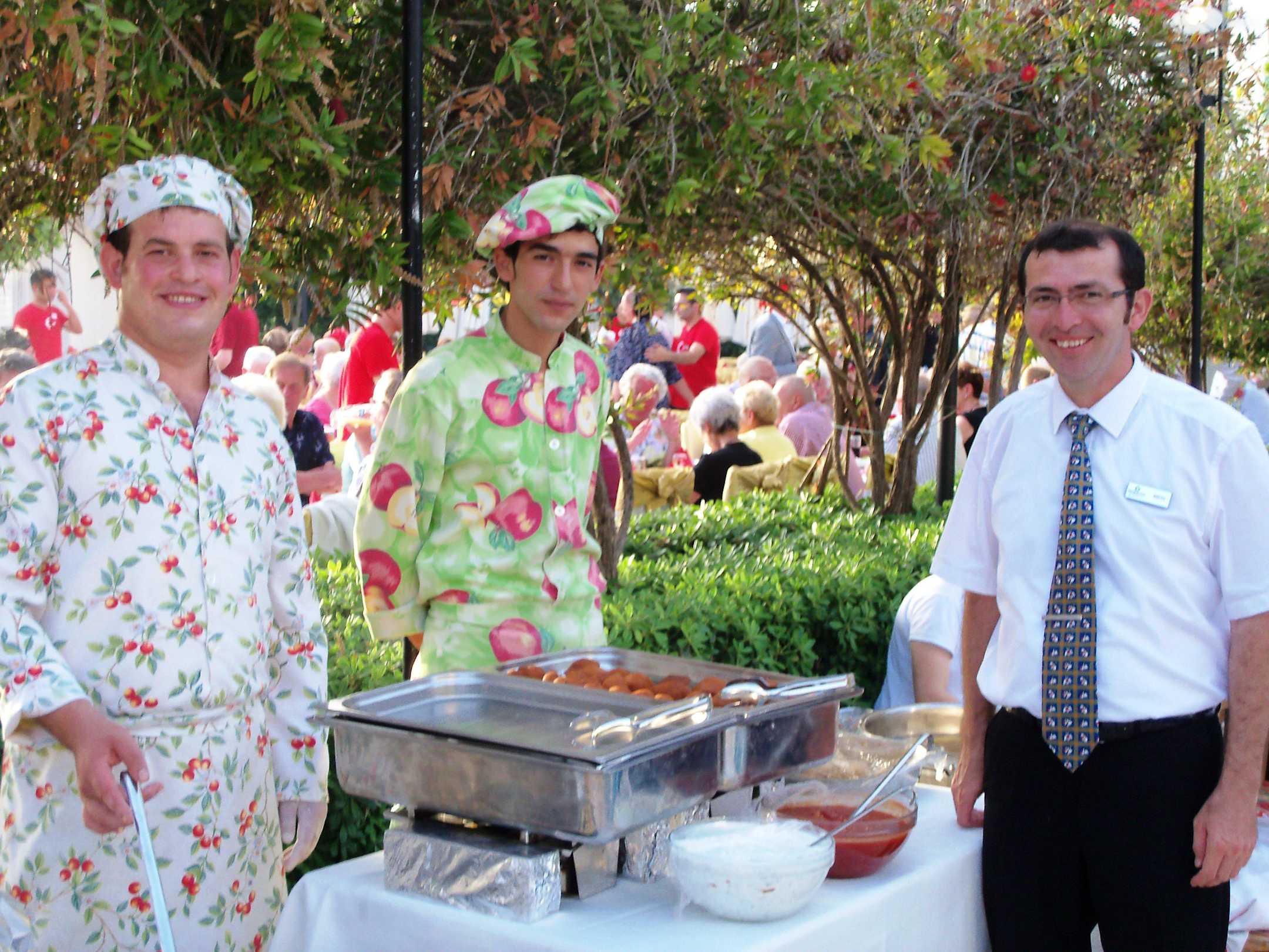 Türkischer Abend, warmer Maiabend und ganz viele Leckereien. Da hat auch Erkan Spaß und freut sich, wenn es den Gästen gut schmeckt.Auch wir haben alles genossen. Danke dem Küchenteam.