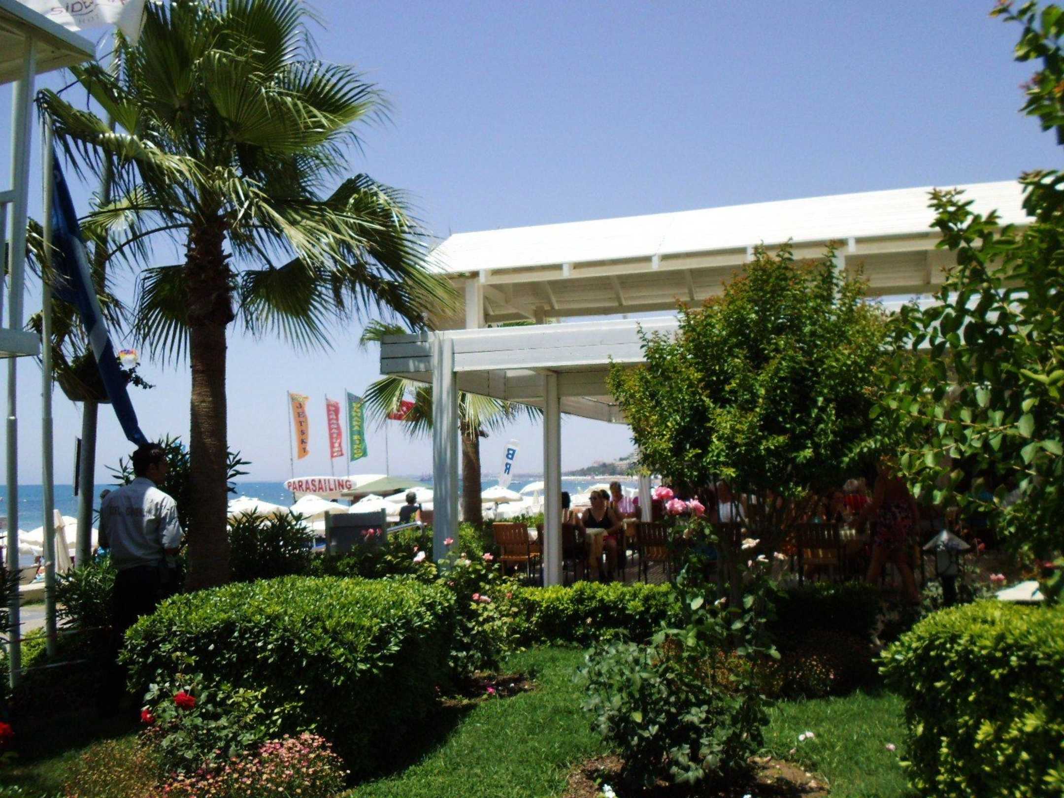 Beach-RestaurantVon hier aus hat man einen wunderschönen Blick sowohl auf die Uferpromenade als auch auf das Meer Richtung Side und Kumköy.
