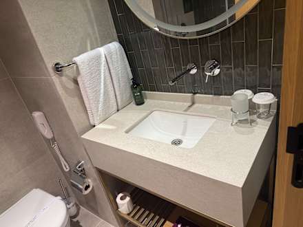 im Bad der neue Waschtisch, leider etwas kleiner als vorher