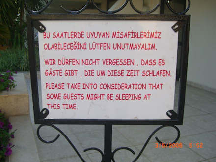 Dieses Schild steht am Eingang zur Lobby. Zu dieser Seite sind auch Gästezimmer und da ist dieser Hinweis sehr angebracht, besonders jetzt, da dort die Raucherecke ist.