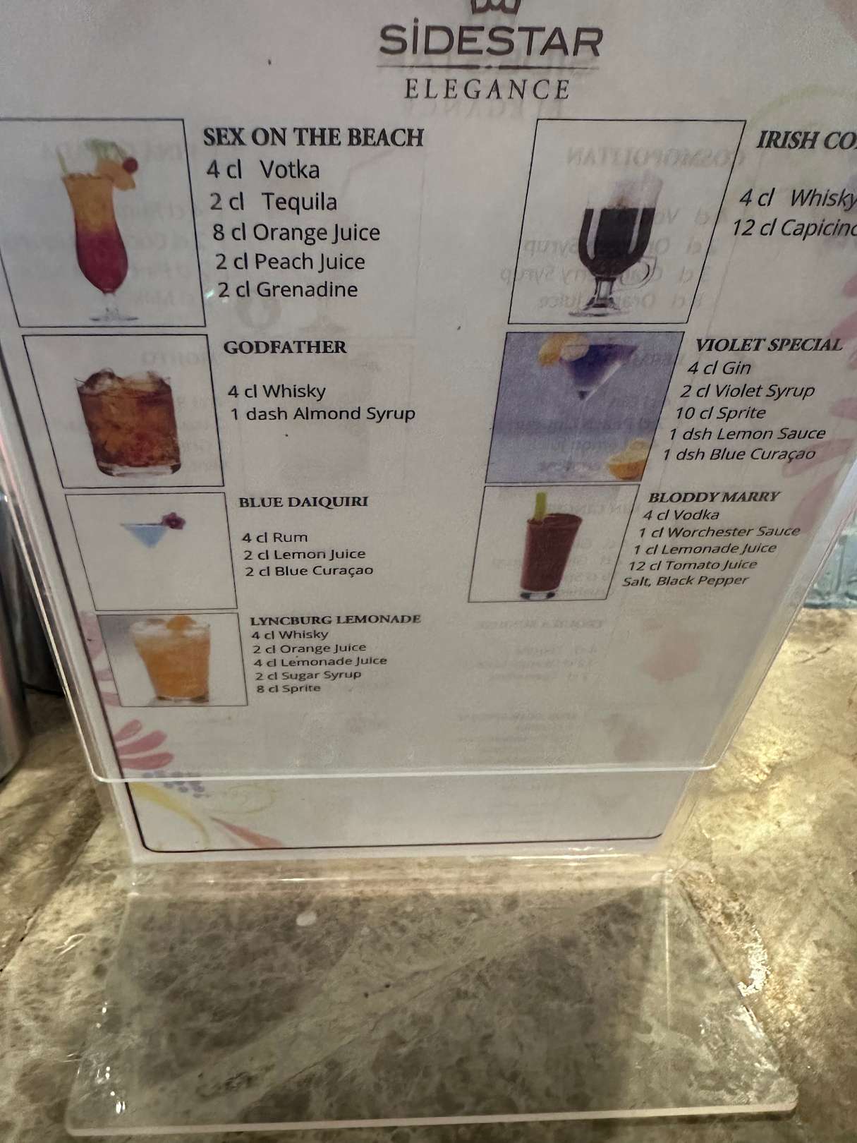 Bar Cocktailangebot (kann aber alles bestellen)