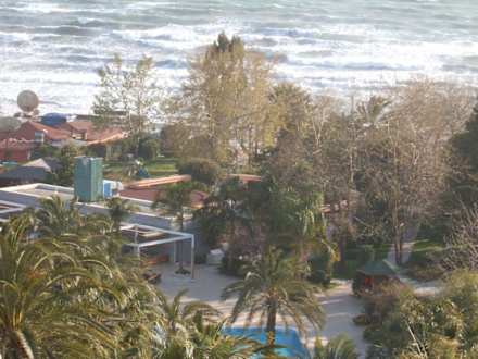 Blick vom Zimmerbalkon zum Strand