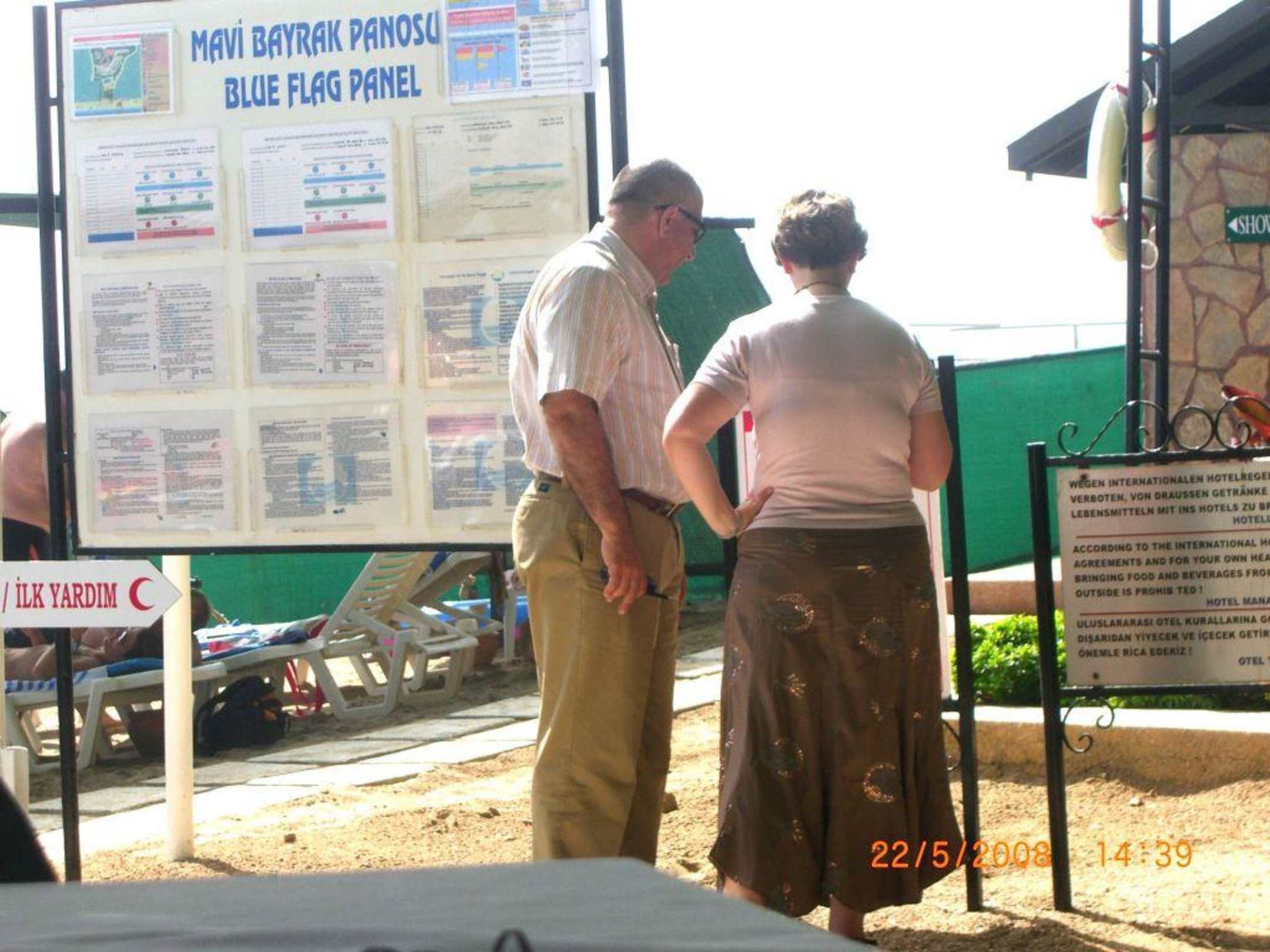 VorortbegehungSo kann man es nennen, wenn der Chef des Hauses mit der Gästebetreuerin die Schilder in der Anlage überprüft. Schritt für Schritt wird die Übersetzung angeschaut und richtiggestellt. Noch ein Vorteil, eine deutschsprechende ehemalige Lehrerin zur Seite zu habe. Nicht nur für die Gäste wertvoll.
