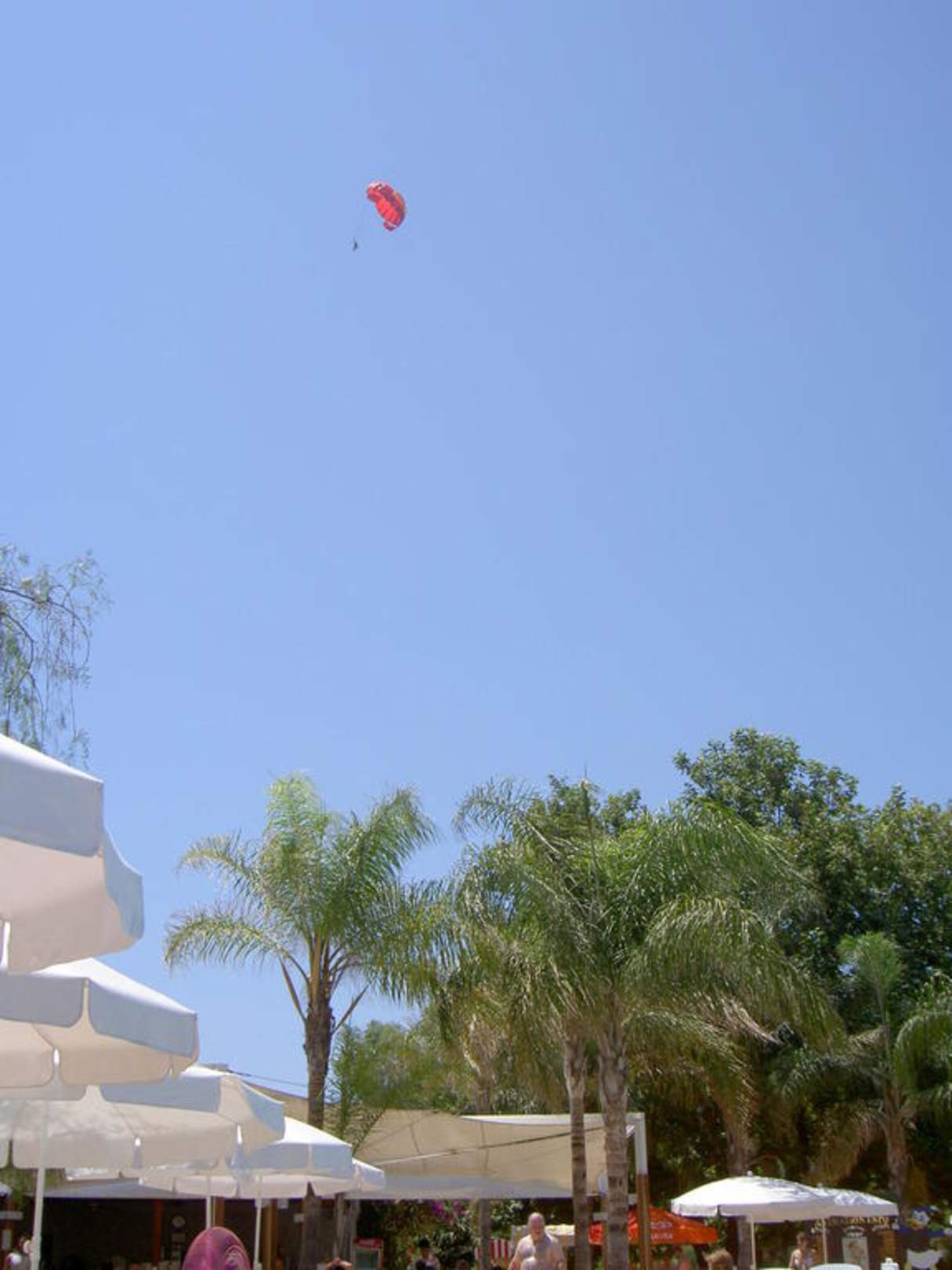 Blick vom Pool zum Paraglider